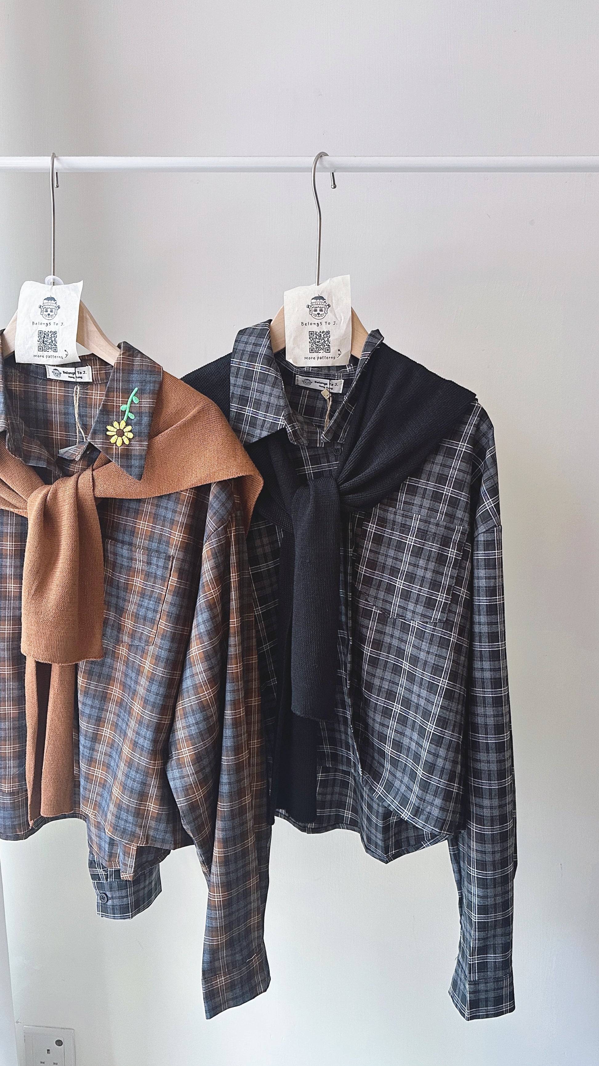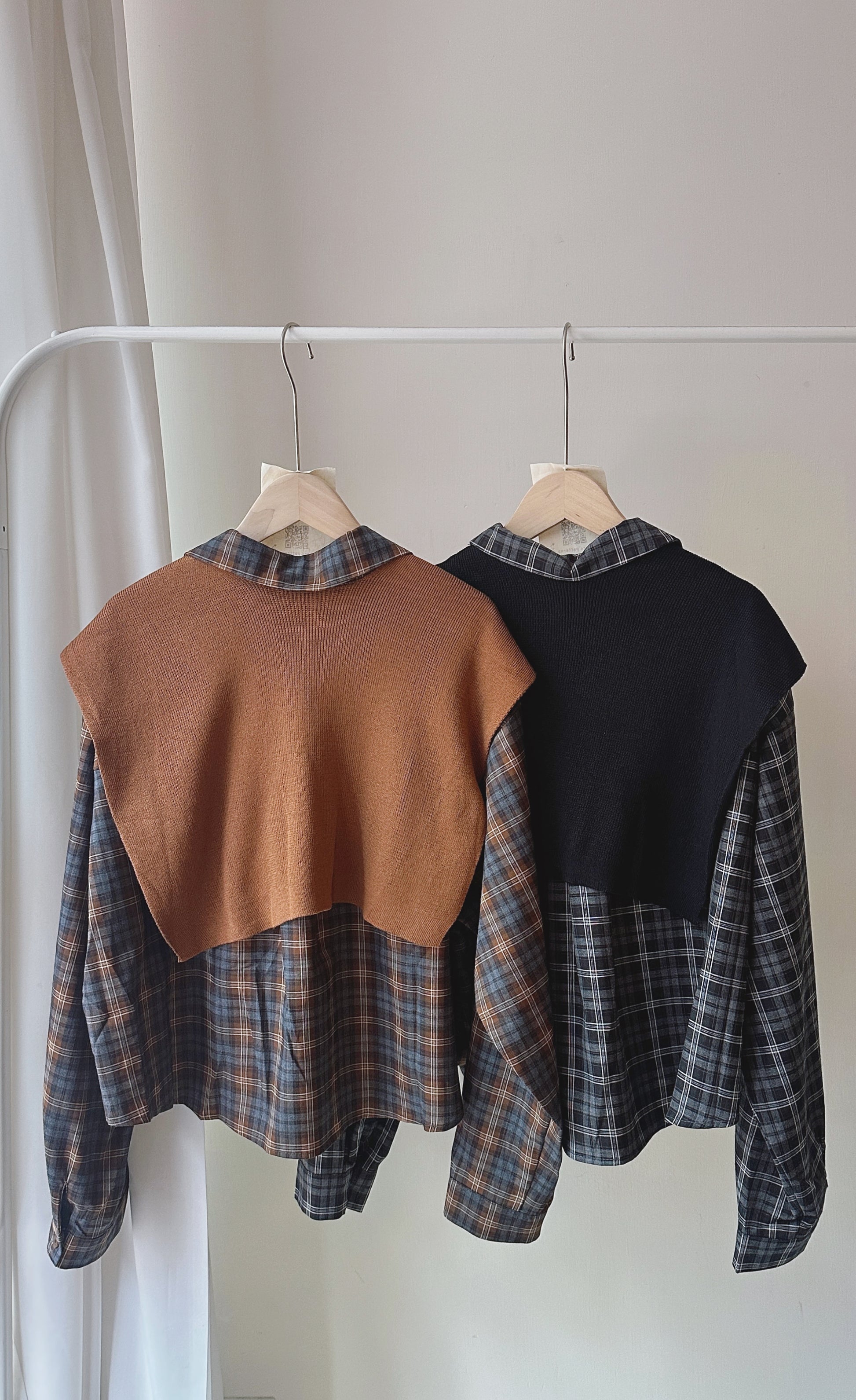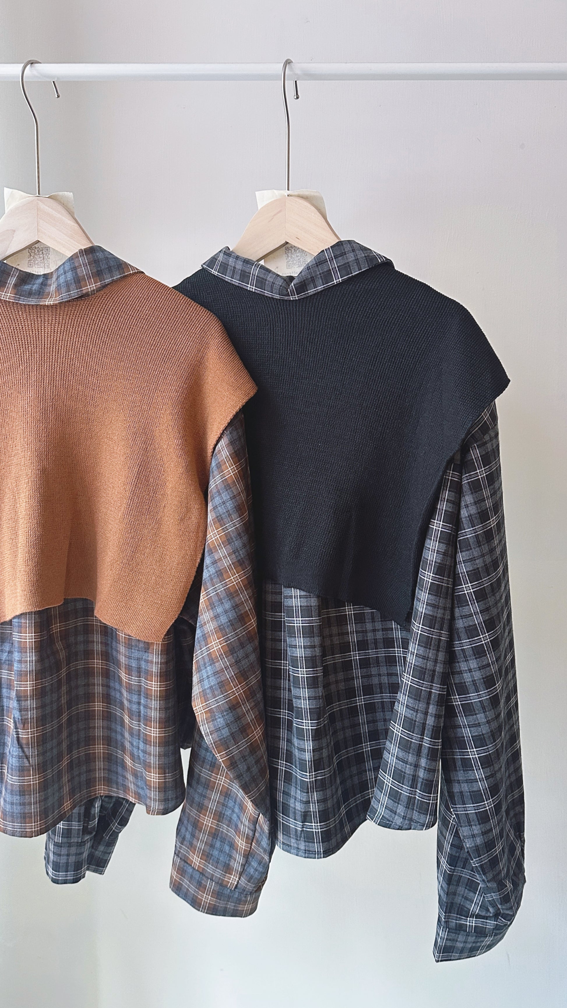 前短後長附披肩格紋上衣