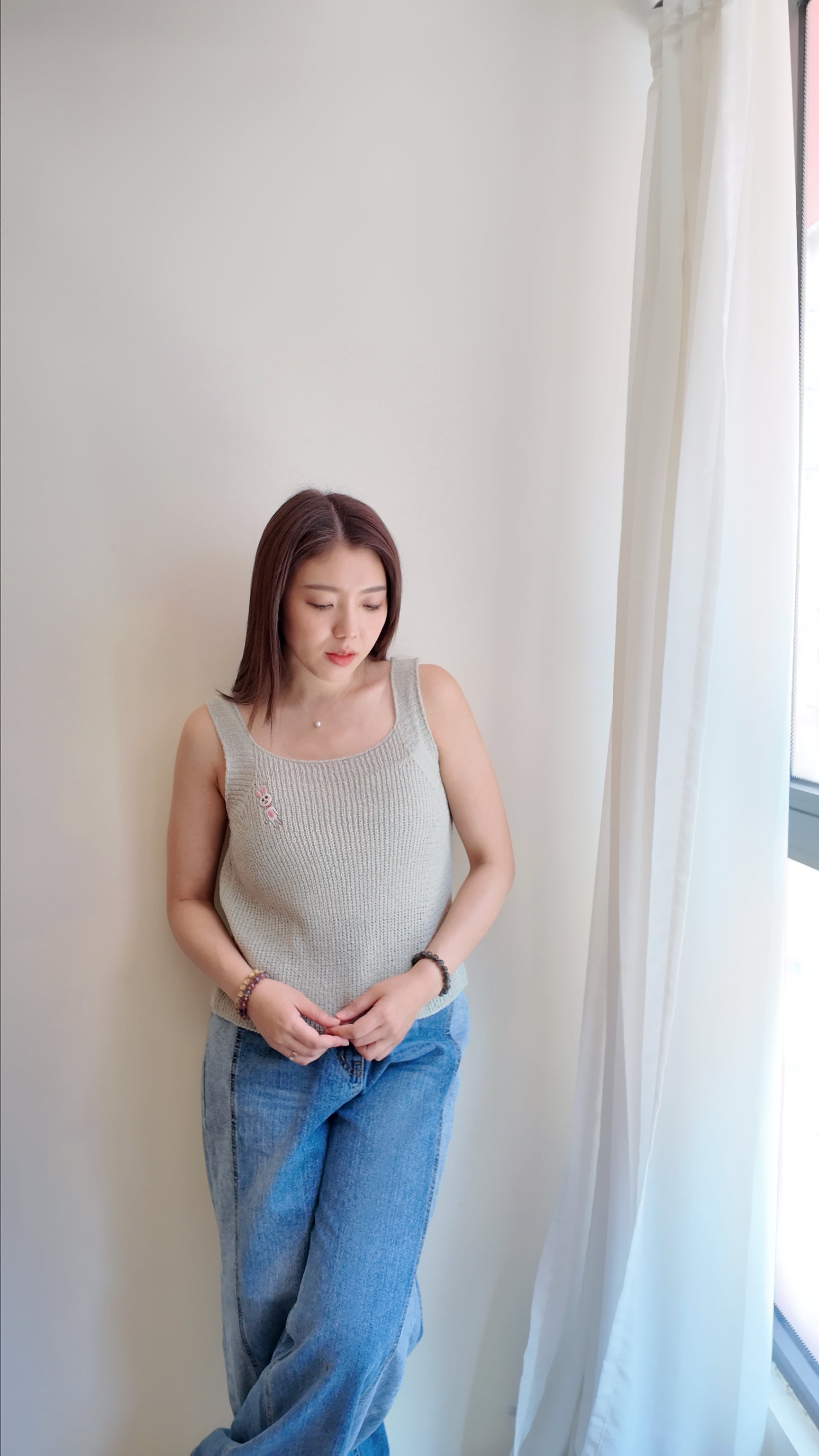 清爽方領針織線背心