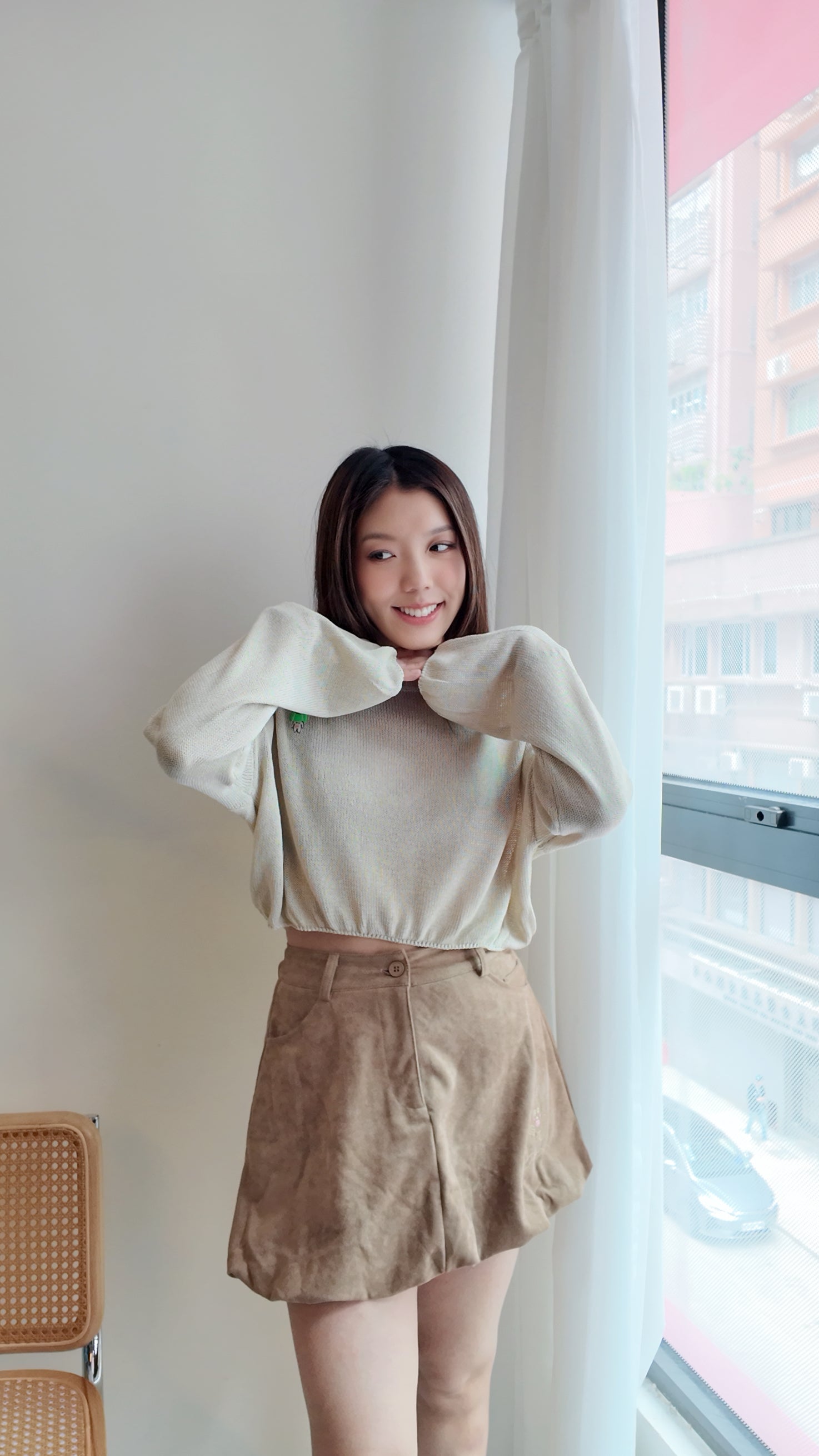 - 針織寬鬆短版剪裁